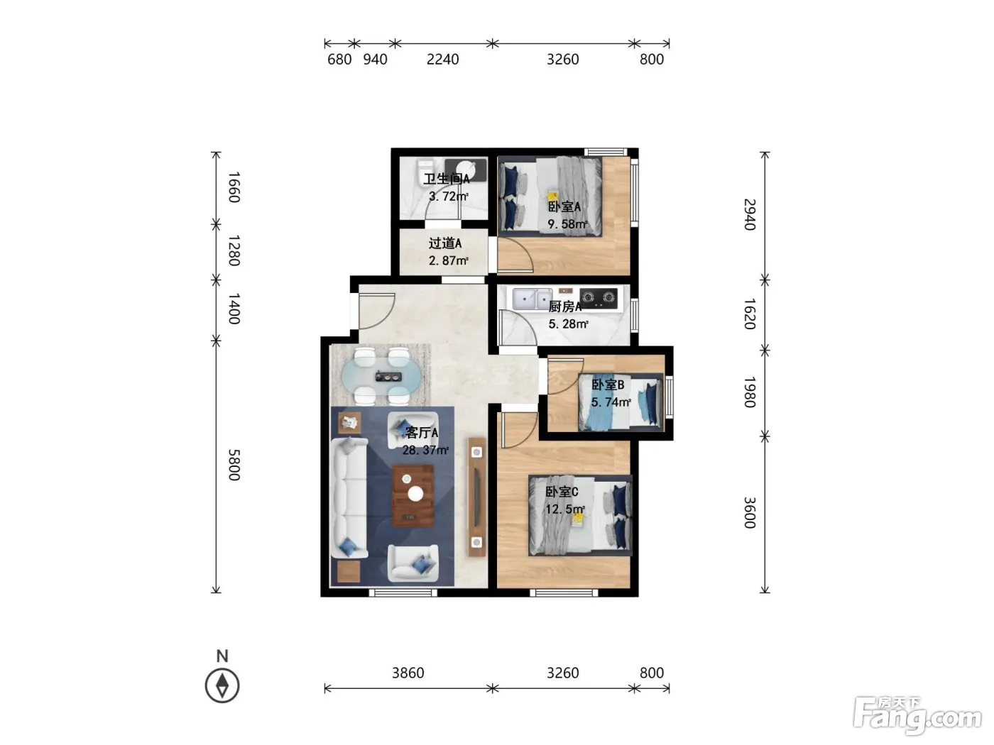 3室2厅1卫