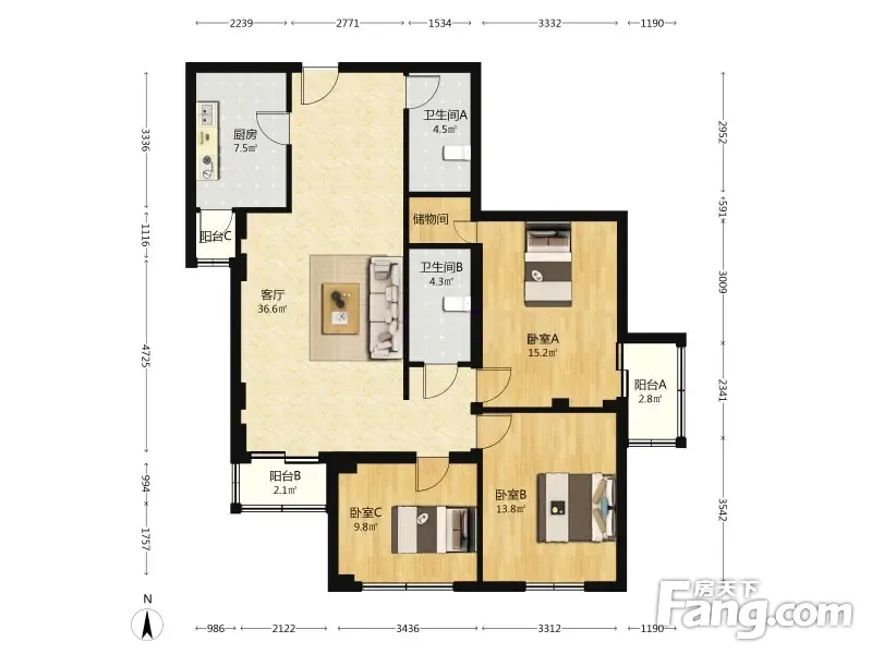 广华轩 3室2厅 135.55平