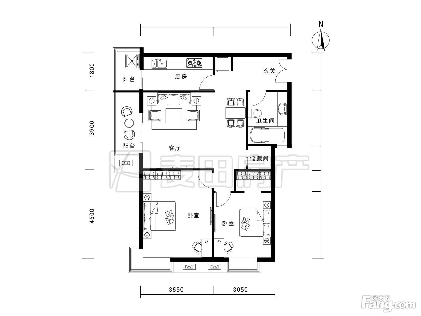 户型齐全,主打户型方正,明厨,客厅朝南,主卧朝南二居