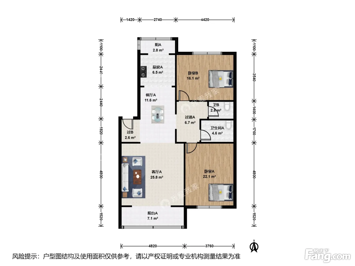 崇文东花市+南北直线通透+双卫餐客厅分离设计+全天采光