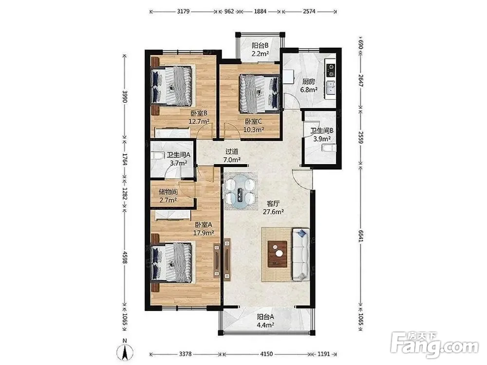 3室1厅2卫