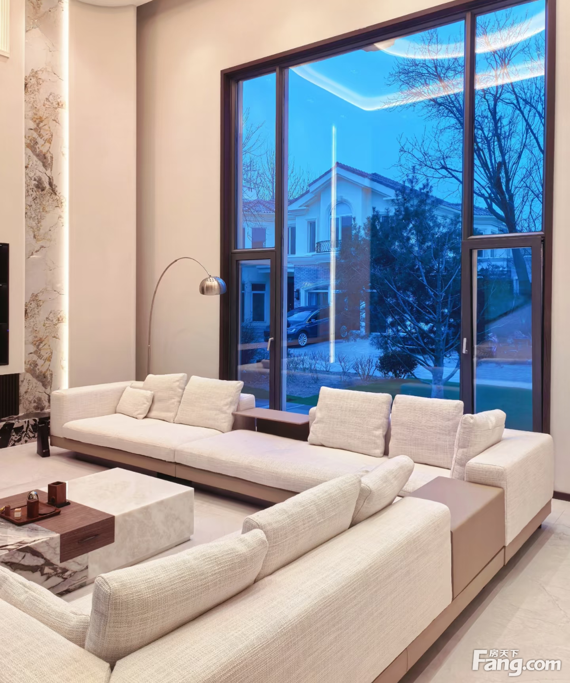1、优山B区别墅,地上二层地下一层,使用1100平左右,单层300多平 2、房子围合式花园近700平 3、室内全新装修,耗资近3000万,室内带私家电梯(瑞士迅达),全屋地暖(乔治费希尔),新风(威能) 4、室内空间布局了5间套房,户型方正,以及首层近7米挑高客厅,视野采光好