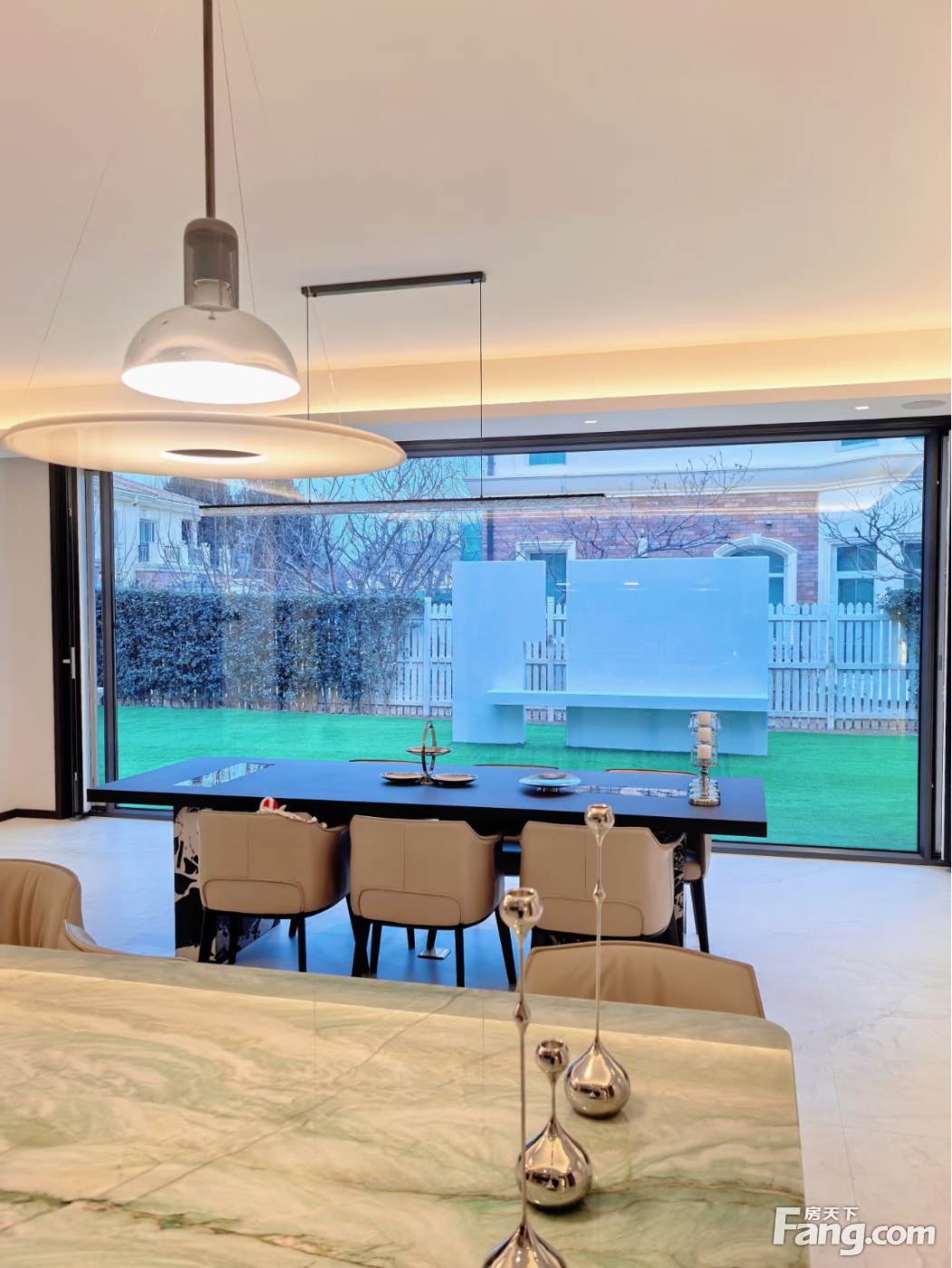 首层7米挑高客厅,厨房,餐厅茶室贯通一体,且带有一间卧室 二层4间卧室套房 地下娱乐休闲空间
