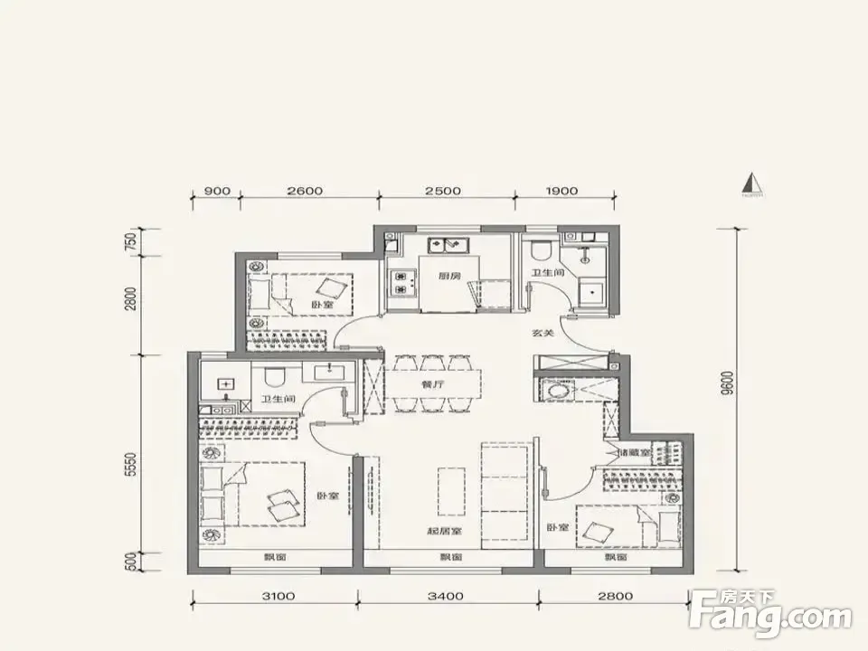 户型齐全,主打户型方正,动静分离二居