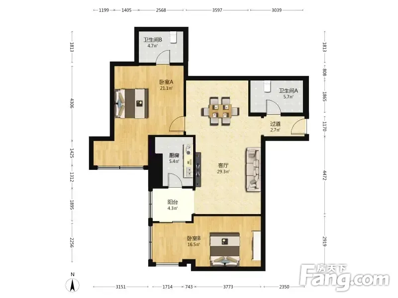 朝阳首府 2室1厅 124.24平