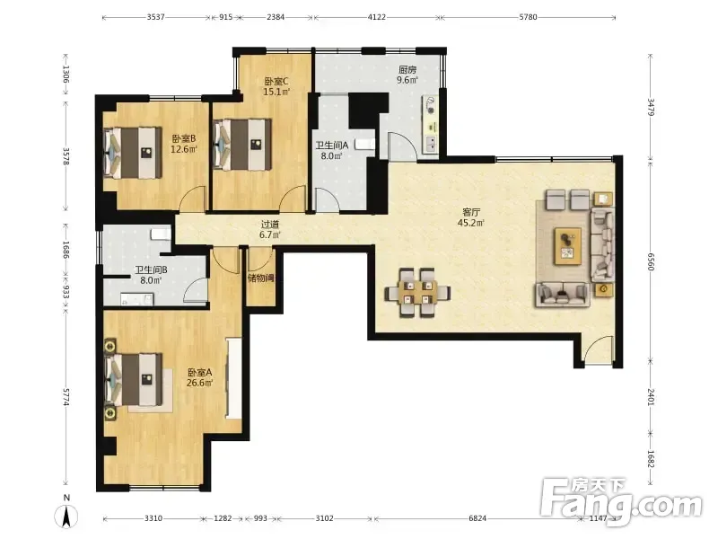 房屋拥有相对宽松的尺寸,布局通透,动静分离,设计豪华