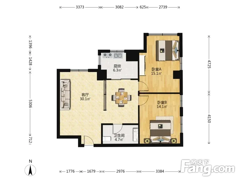 户型齐全,主打户型方正,明厨,客厅朝南,双卧朝南二居