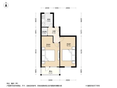 户型介绍:此房户型为2室1厅1卫,建筑面积为53.18平米,两个卧室并排朝南,朝南楼间距非常宽,无遮挡,采光!厨房朝北对着走廊,避免正对两广路的车辆噪音,户型格局方正,室内层高2.7米左右,居住不压抑