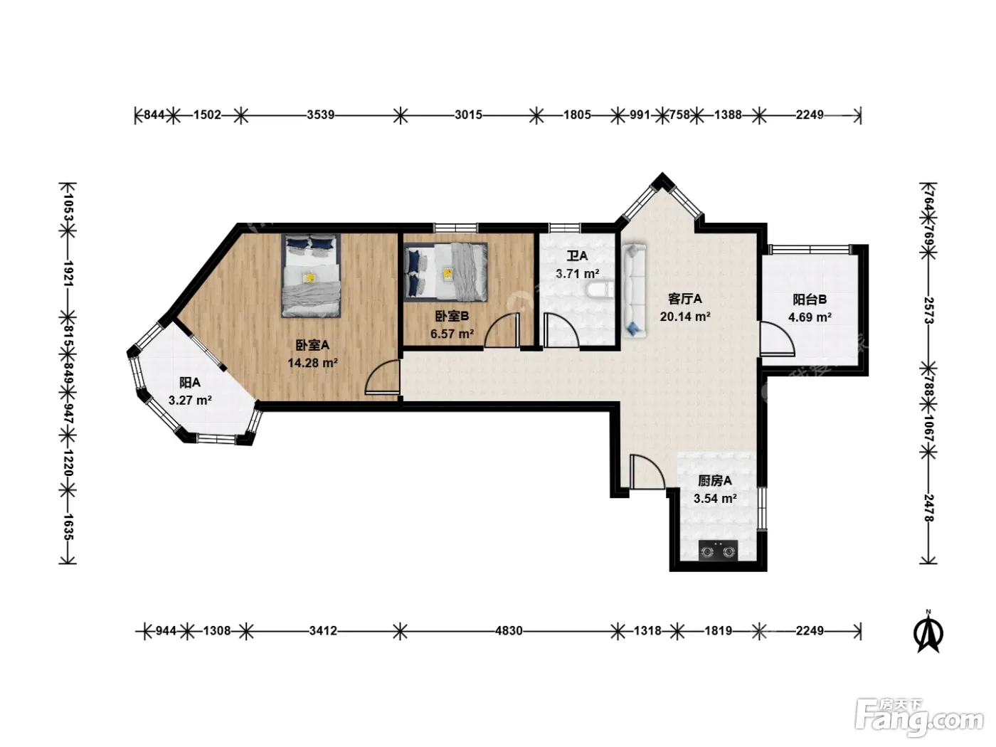 户型齐全,主打明厨,双阳台二居