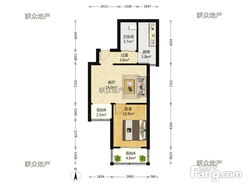 1室2厅1卫