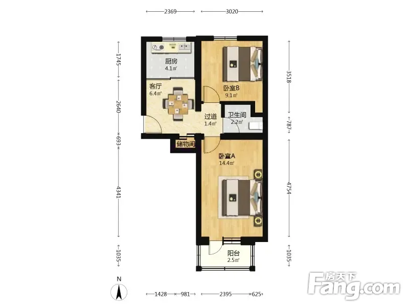 农行家属宿舍 2室1厅 58.02平