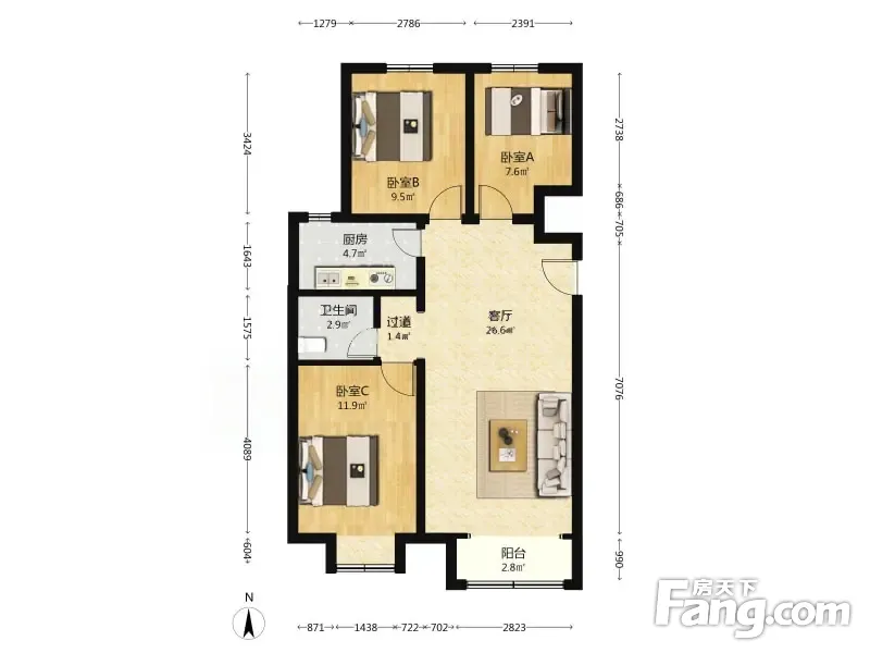 中国铁建青秀尚城 3室2厅 92.35平