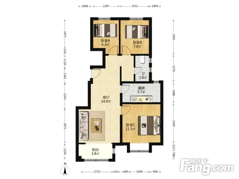招商都会湾 3室1厅 88.42平