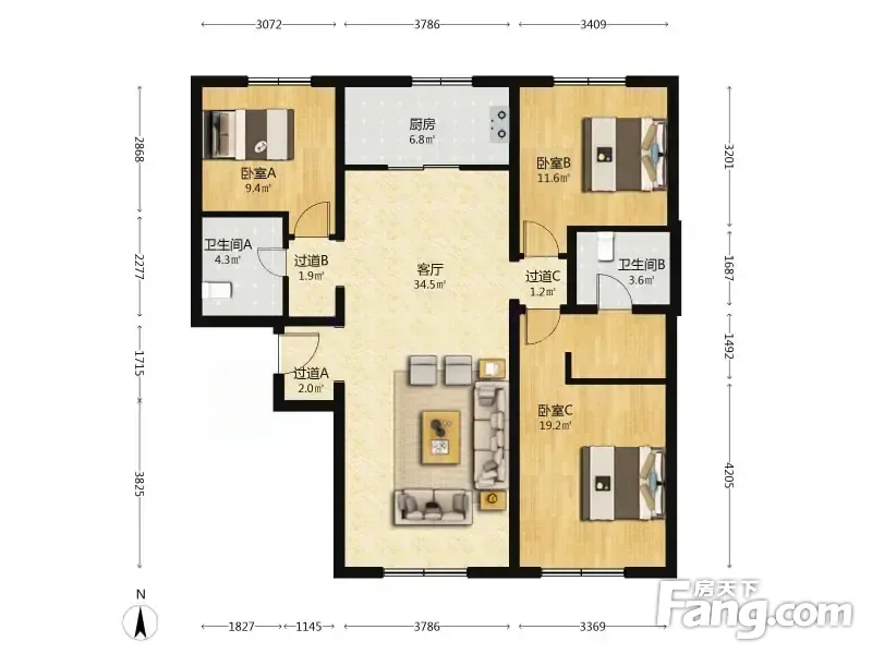 金隅万科城二期 3室1厅 123平