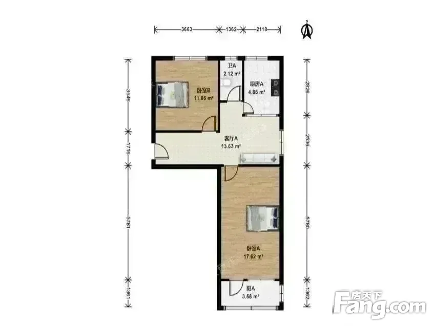户型介绍:两间卧室一南一北,厨房卫生间都朝北带窗户,餐厅带朝东的窗户,全明格局,南侧主卧室带阳台