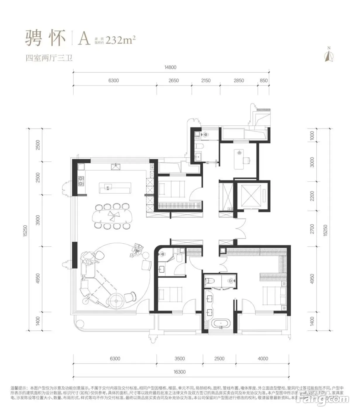 北京宸园 232平5居 南向精装修 安静不临街 直观园林景观