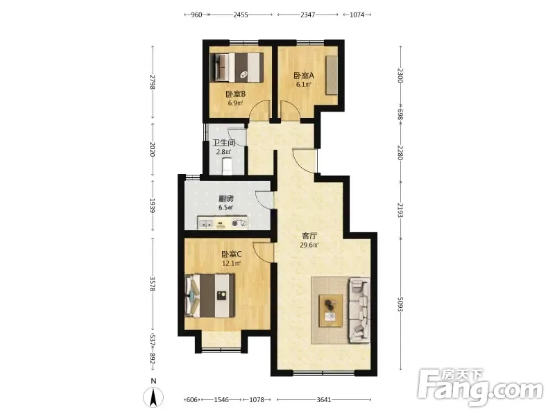 户型齐全,主打南北通透,采光充足三居