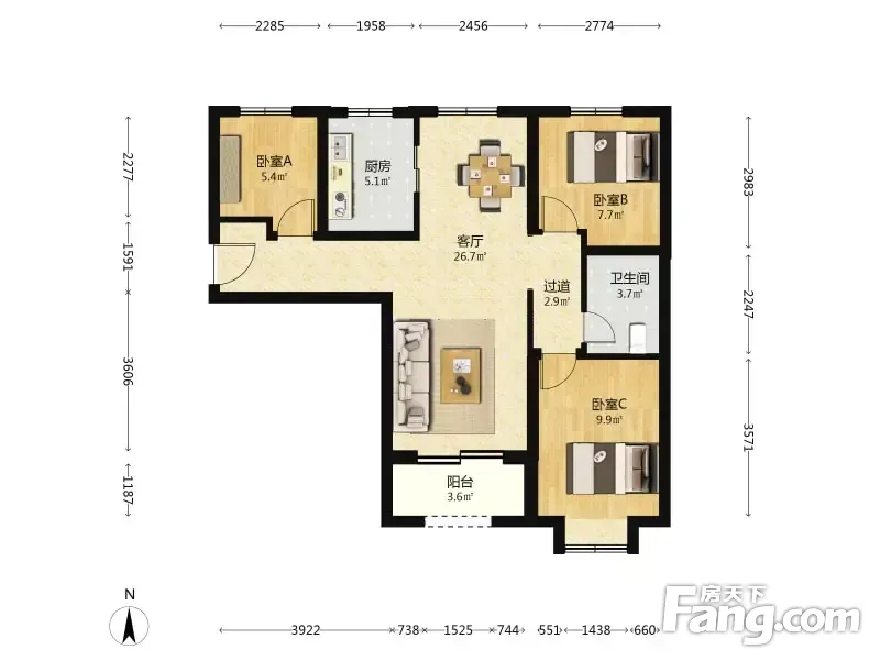 户型齐全,主打南北通透,采光充足三居