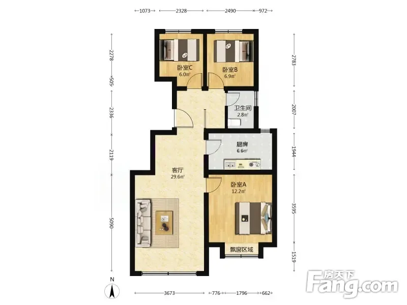户型齐全,主打南北通透,采光充足三居