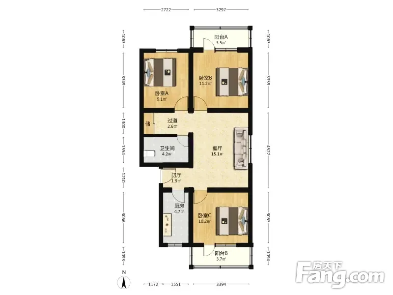 拱辰南大街 3室1厅 96.07平