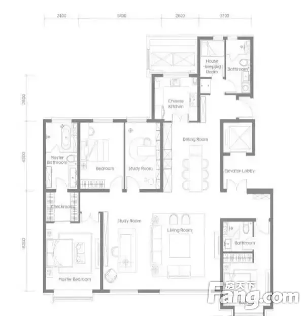 房屋拥有相对宽松的尺寸,布局通透,动静分离,设计豪华