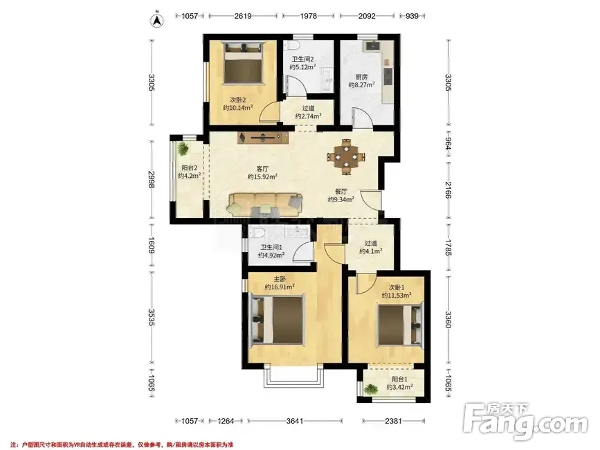 户型齐全,主打户型方正,明厨,客厅朝南,双卧朝南三居