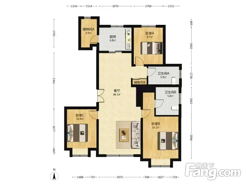 3室2厅1卫