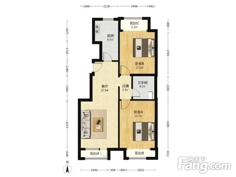 芭蕾雨悦都北区 2室1厅 82.63平