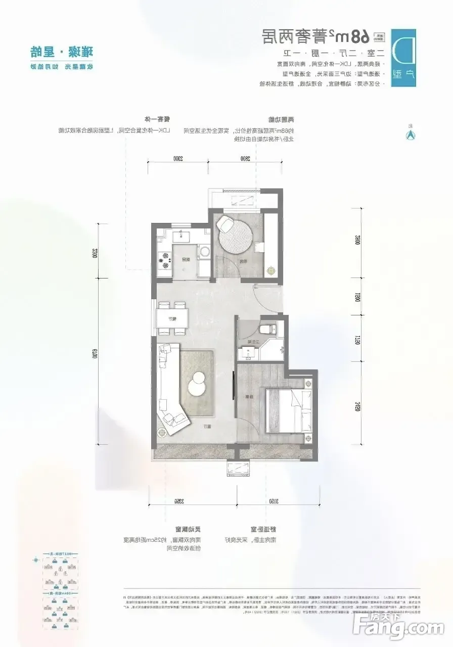 户型齐全,主打南北通透,动静分离,客厅朝南,卧室朝南二居