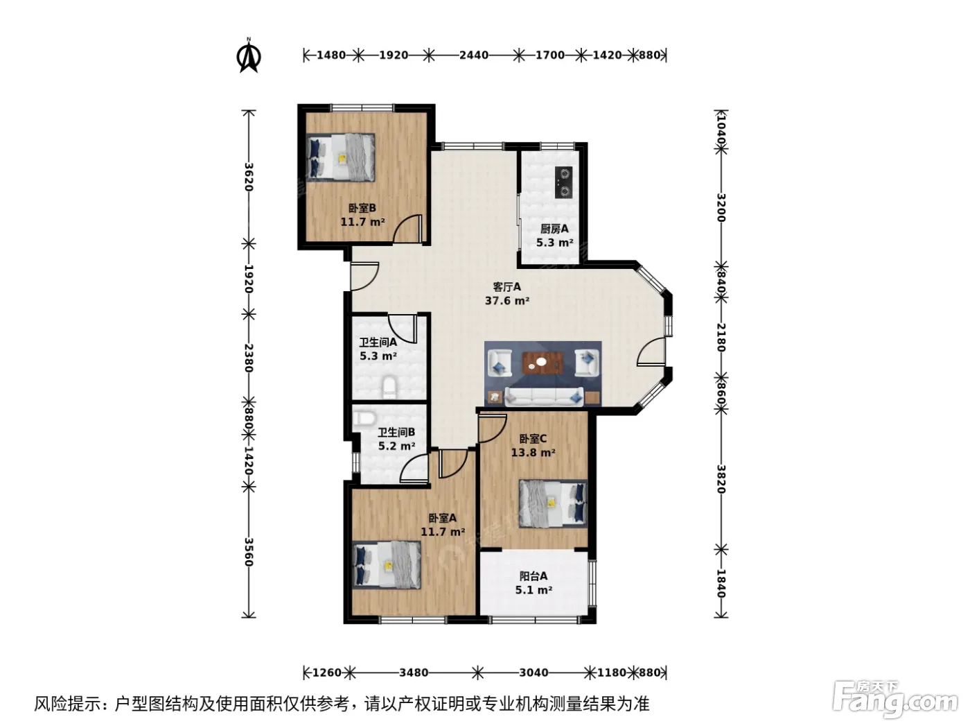 *获取完整户型报告,同时会有免费语音讲解服务