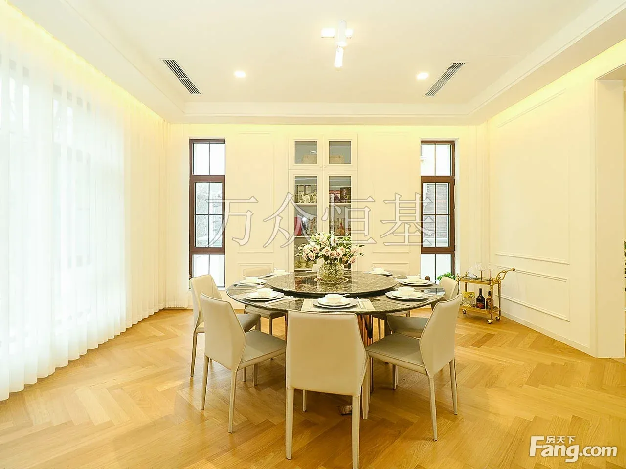 631平米精装类独栋,千平空间,售价2900万,绿地260平米,面宽23米,大楼间距,刚今年装修好,绿色环保材料,全屋地暖、局部新风,九五成新,真正的拎包即住!四居室全部朝南,双主卧设计,8.6米大挑空,阳光餐厅,双厨配置,净层高3.2米,几乎全明的状态,多功能区及客房设计,三代人居住都无忧