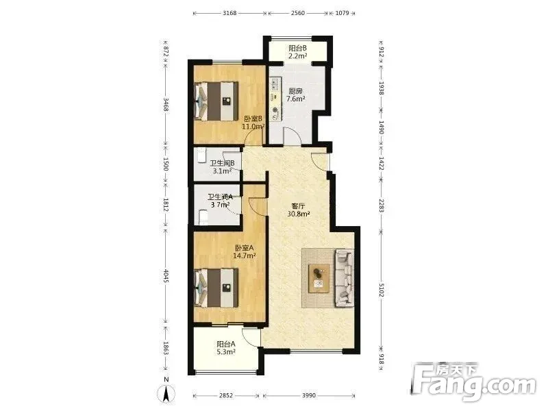 2室1厅2卫