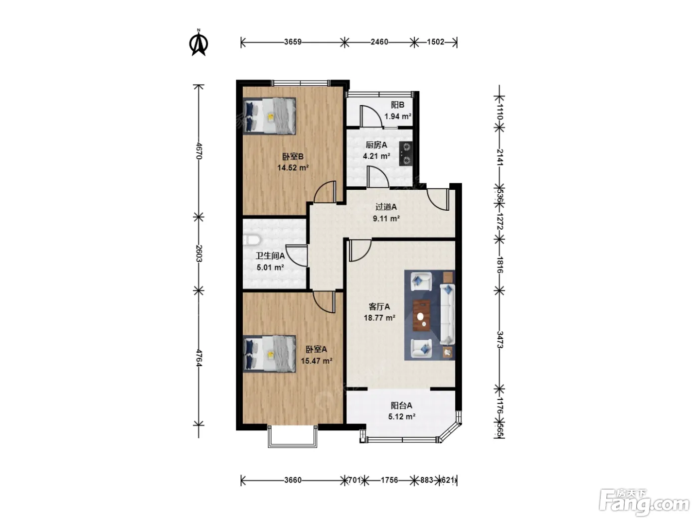 户型齐全,主打户型方正,客厅朝南,双阳台二居
