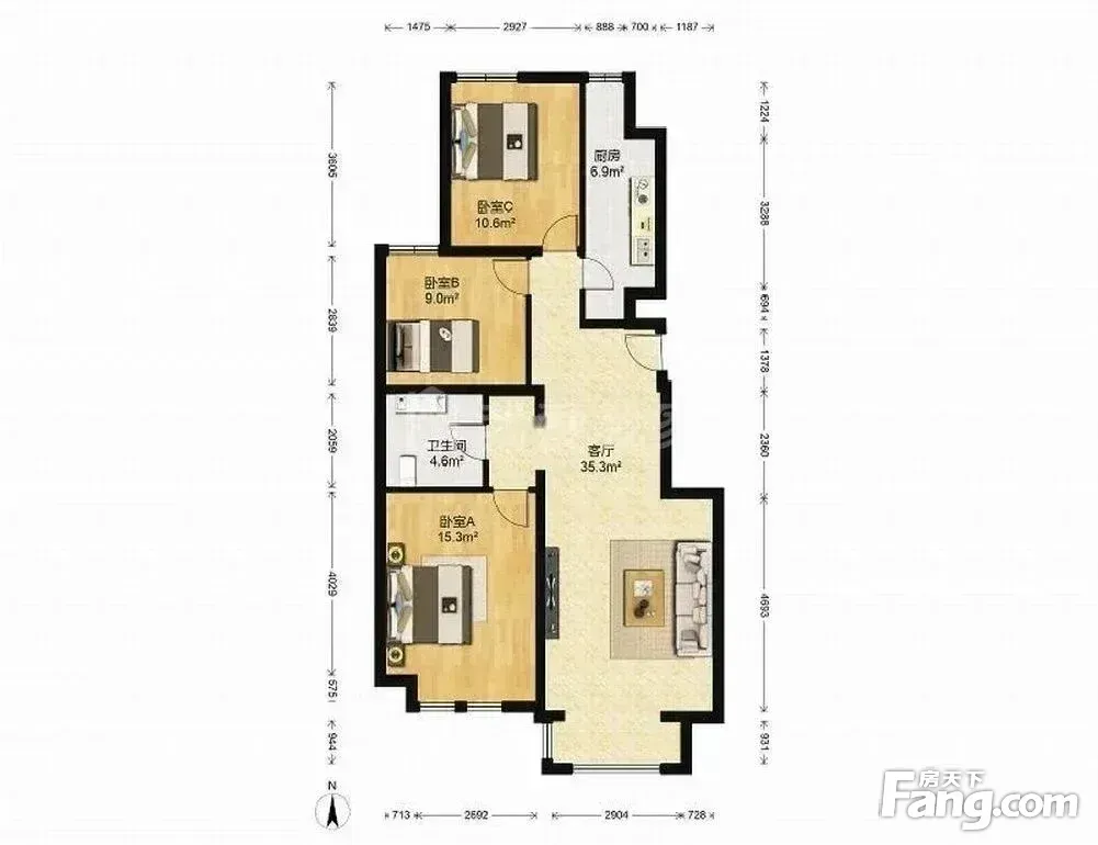 长阳 建邦华庭南北向三居室 满五年 集中供暖 随时看