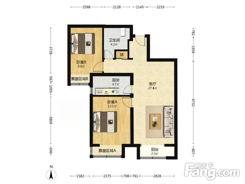 户型齐全,主打户型方正,明厨,客厅朝南,主卧朝南二居
