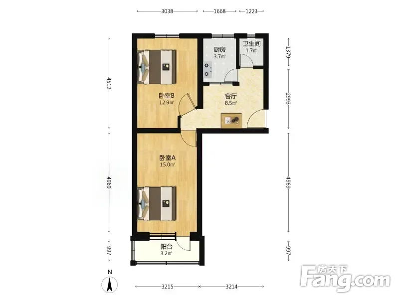 (客户0)永乐东区 2室1厅 59.07平 南北通透