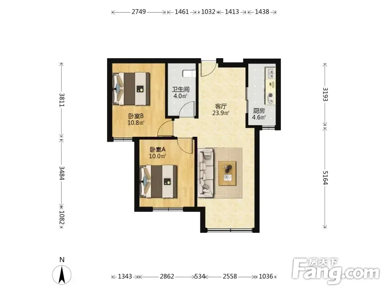 户型齐全,主打明厨,客厅朝南,双卧朝南二居