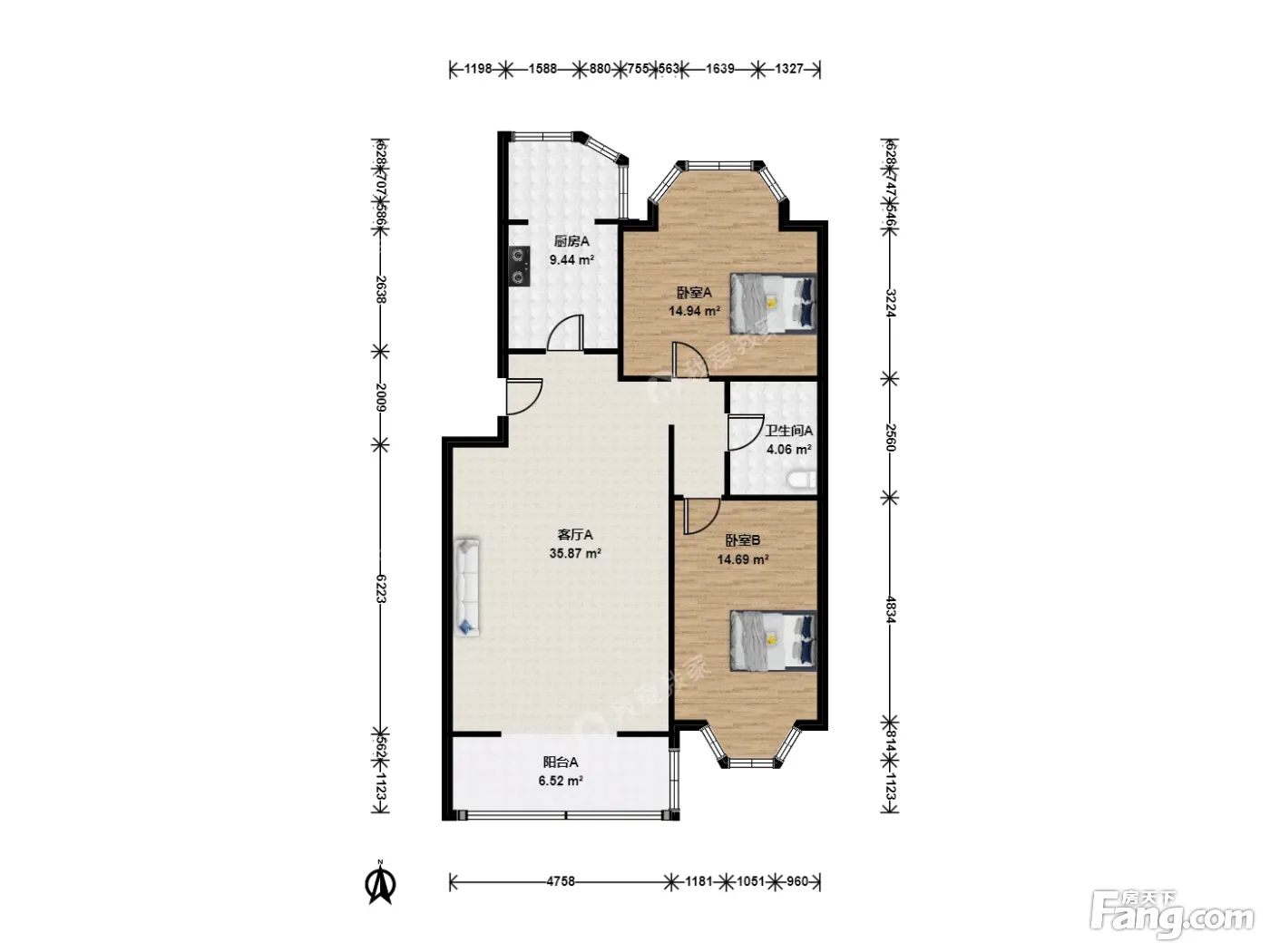 韩村河雅苑南北通透两居室户型方正
