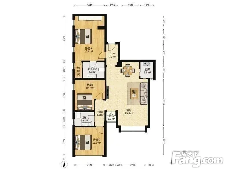 柏林爱乐二期 3室1厅 128.97平