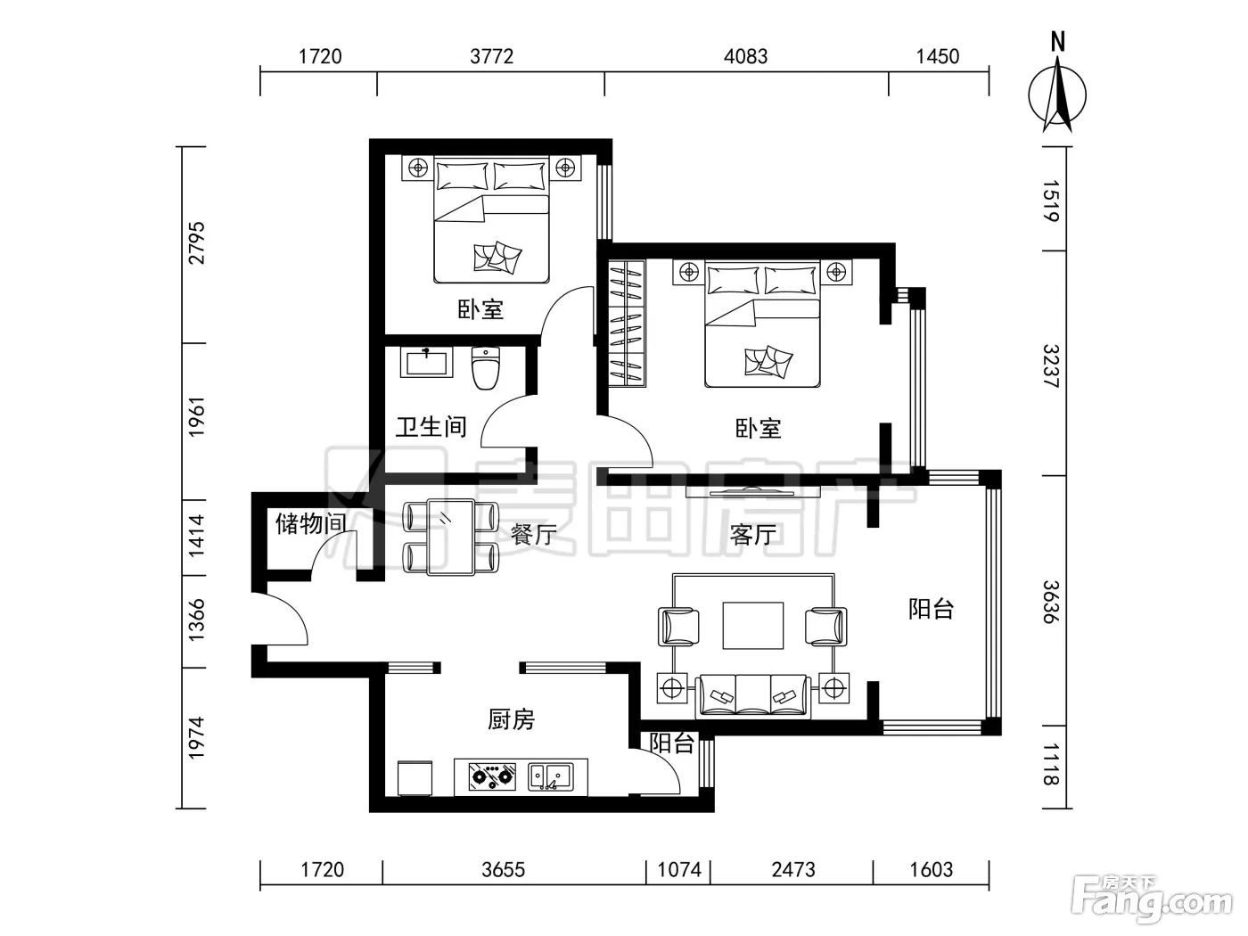 户型齐全,主打客厅朝南二居