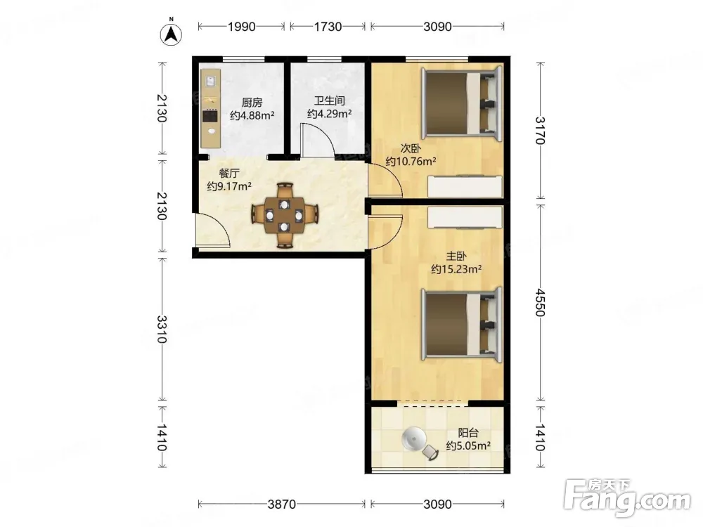 户型齐全,主打户型方正,明厨,客厅朝南,主卧朝南二居