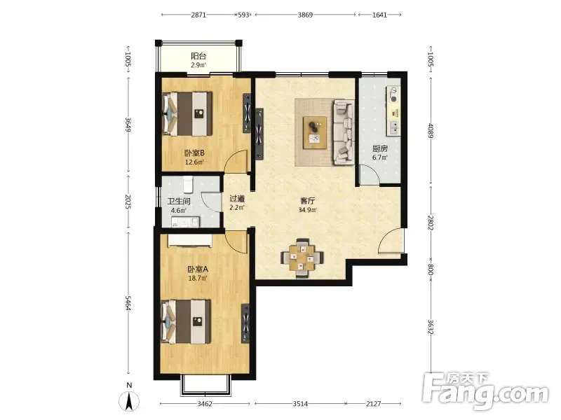 户型齐全,主打明厨,独立衣帽间,双卧朝南,主卧朝南二居