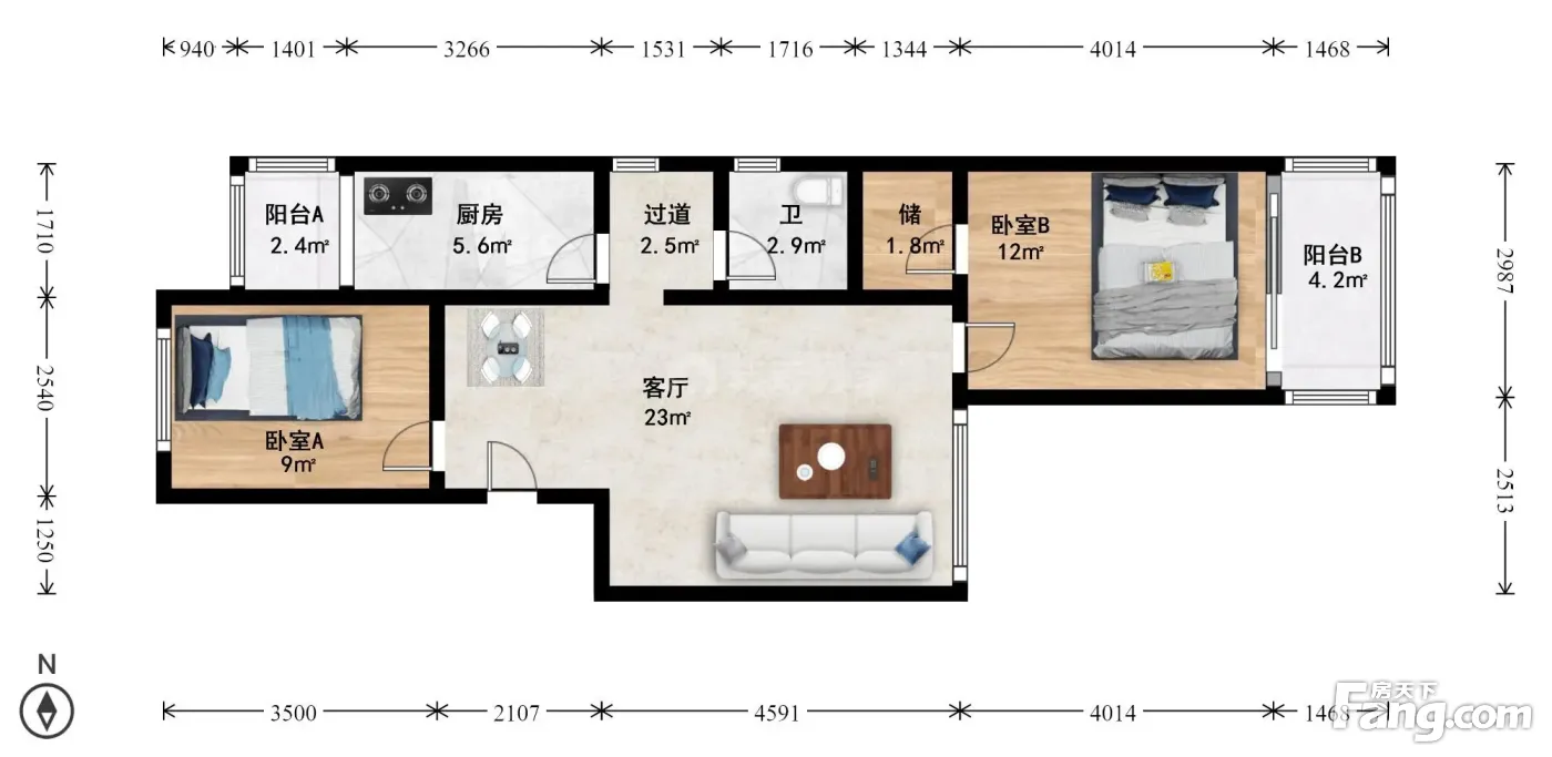 户型齐全,主打明厨,双卧朝南,主卧朝南二居