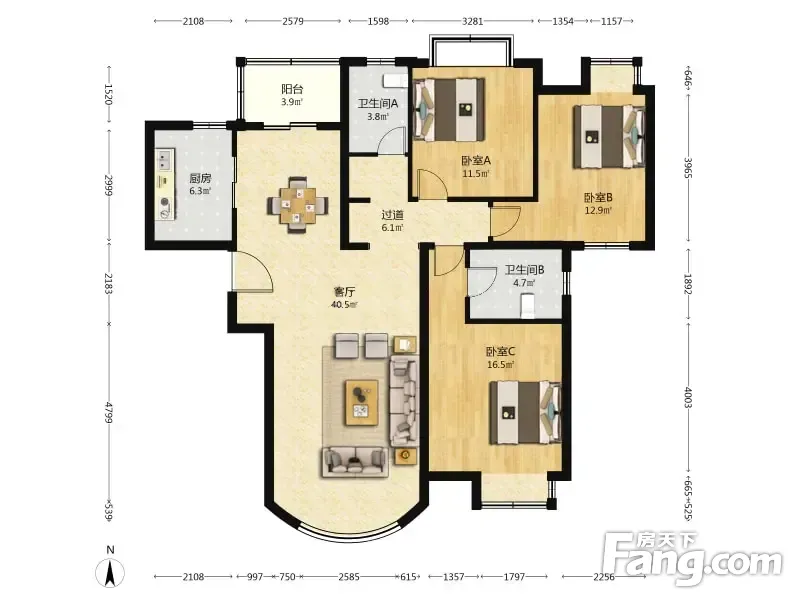 户型齐全,主打户型方正,明厨,明卫,主卧朝南三居