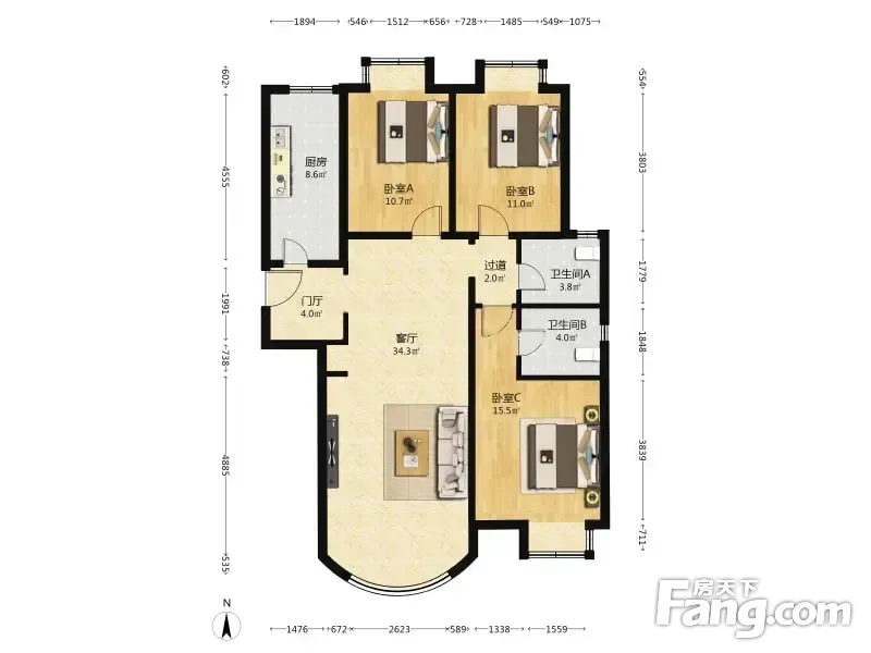 户型齐全,主打户型方正,明厨,明卫,主卧朝南三居