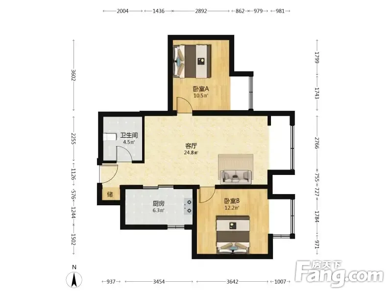 户型齐全,主打南北通透,客厅朝南二居