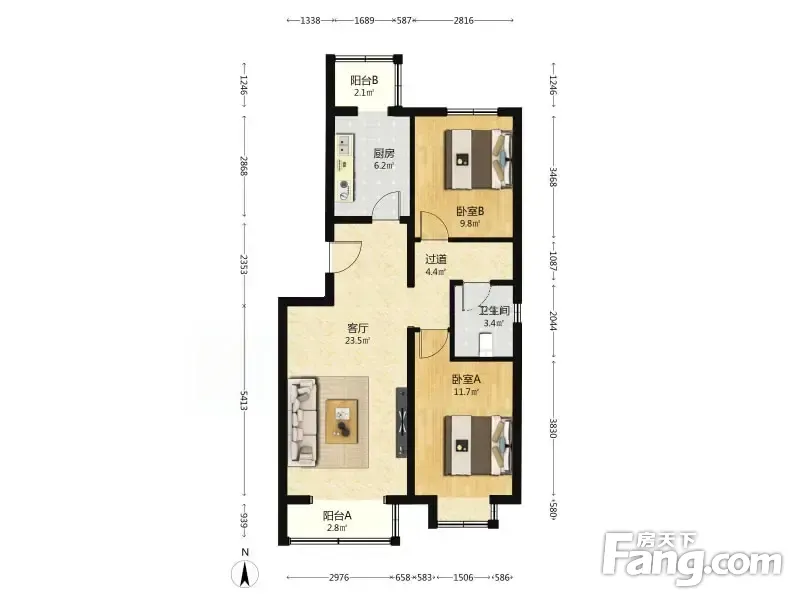 三槐家园东区 2室1厅 85.76平
