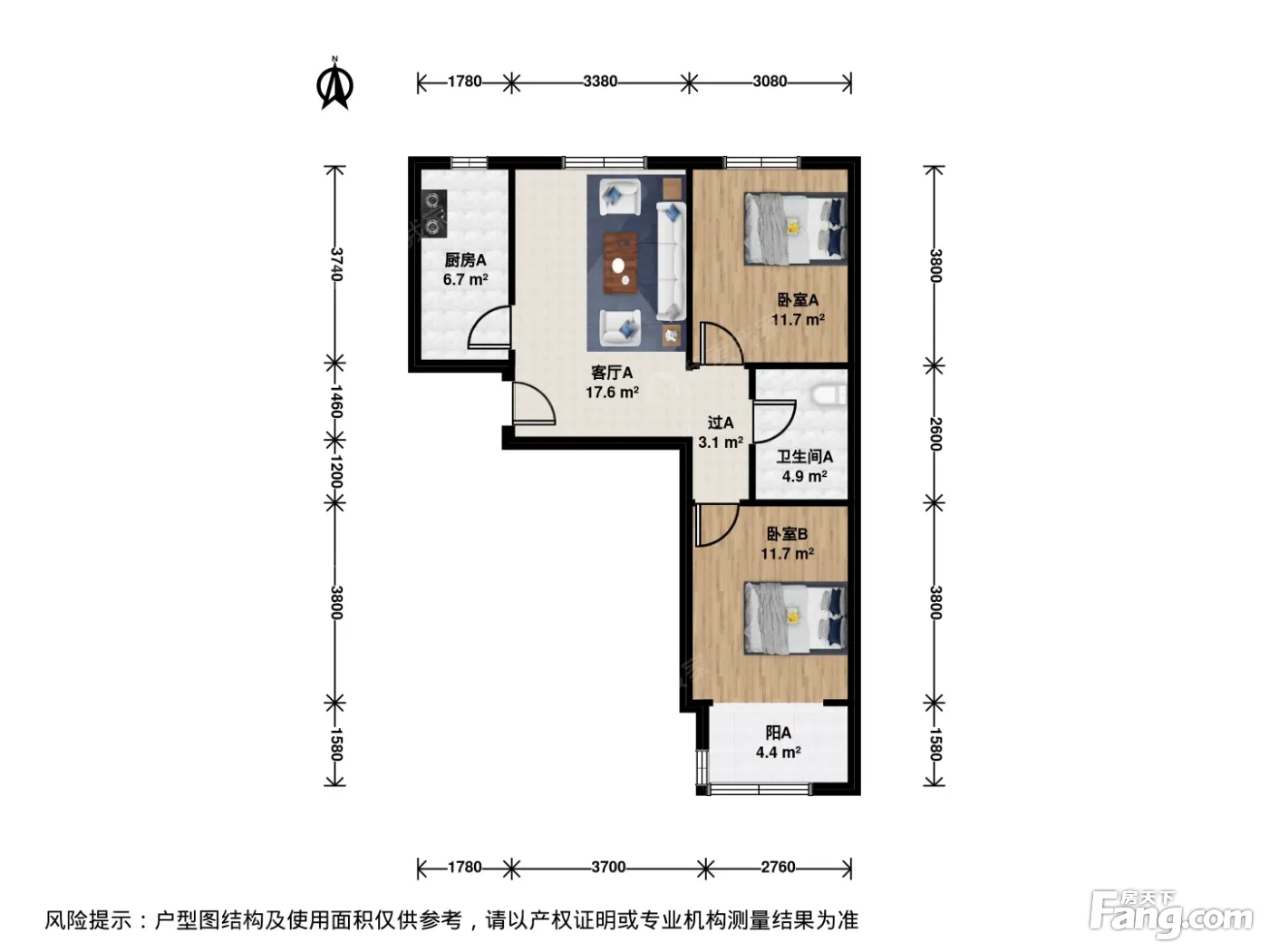 户型齐全,主打明厨,客厅朝南二居