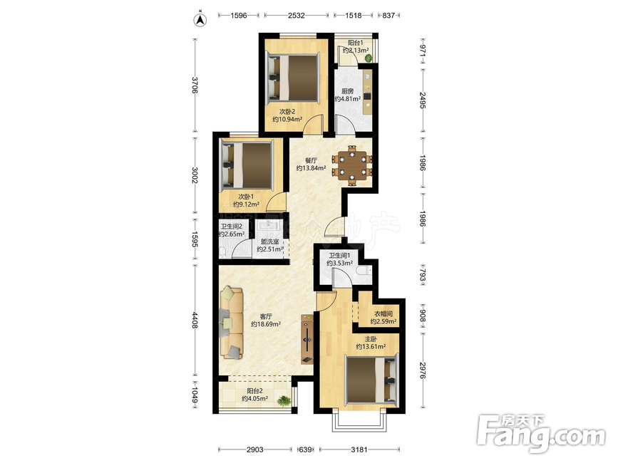 户型齐全,主打户型方正,双阳台二居