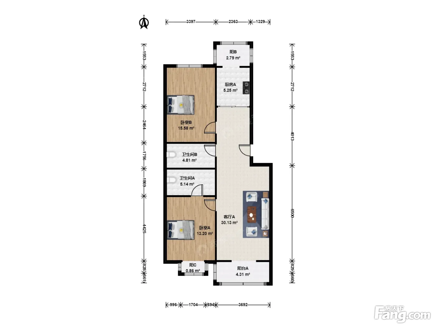 2室1厅2卫